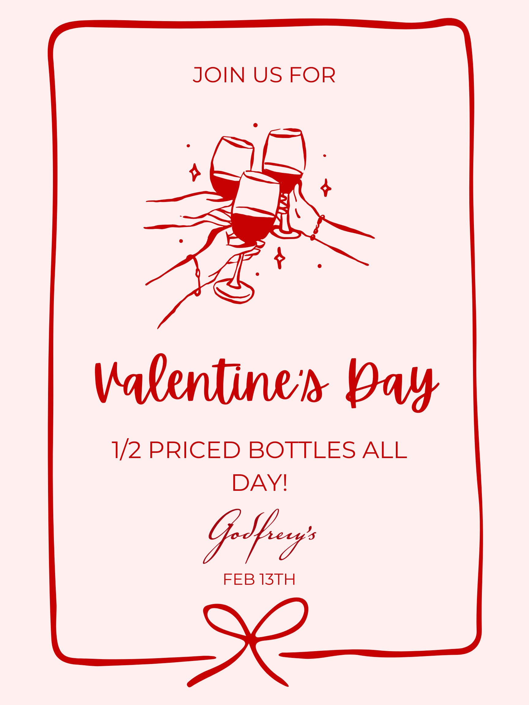 Raise a glass to the gals in your life! 🥂 Celebrate Galentine’s with half-price bottles all day on Friday, February 13th.